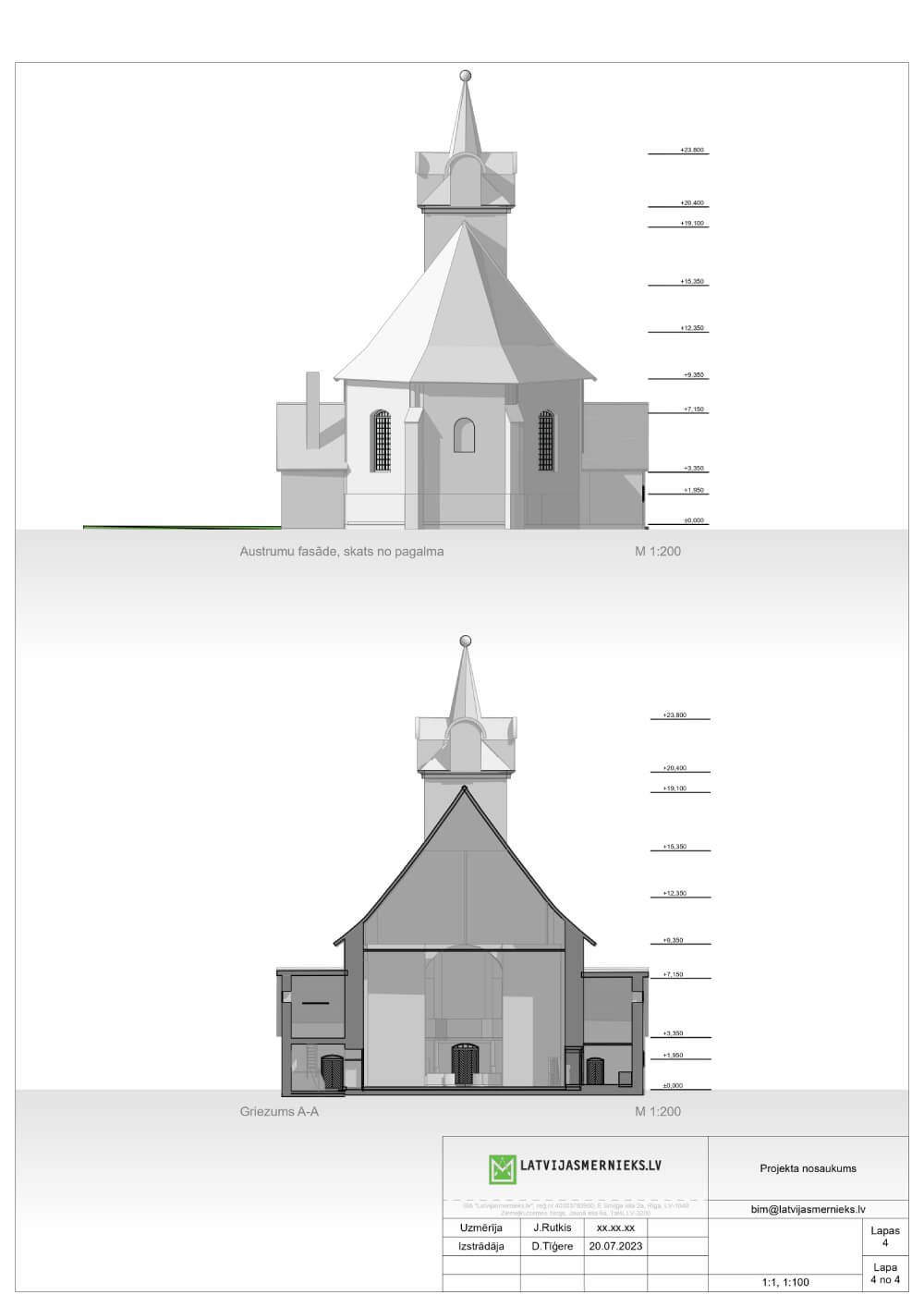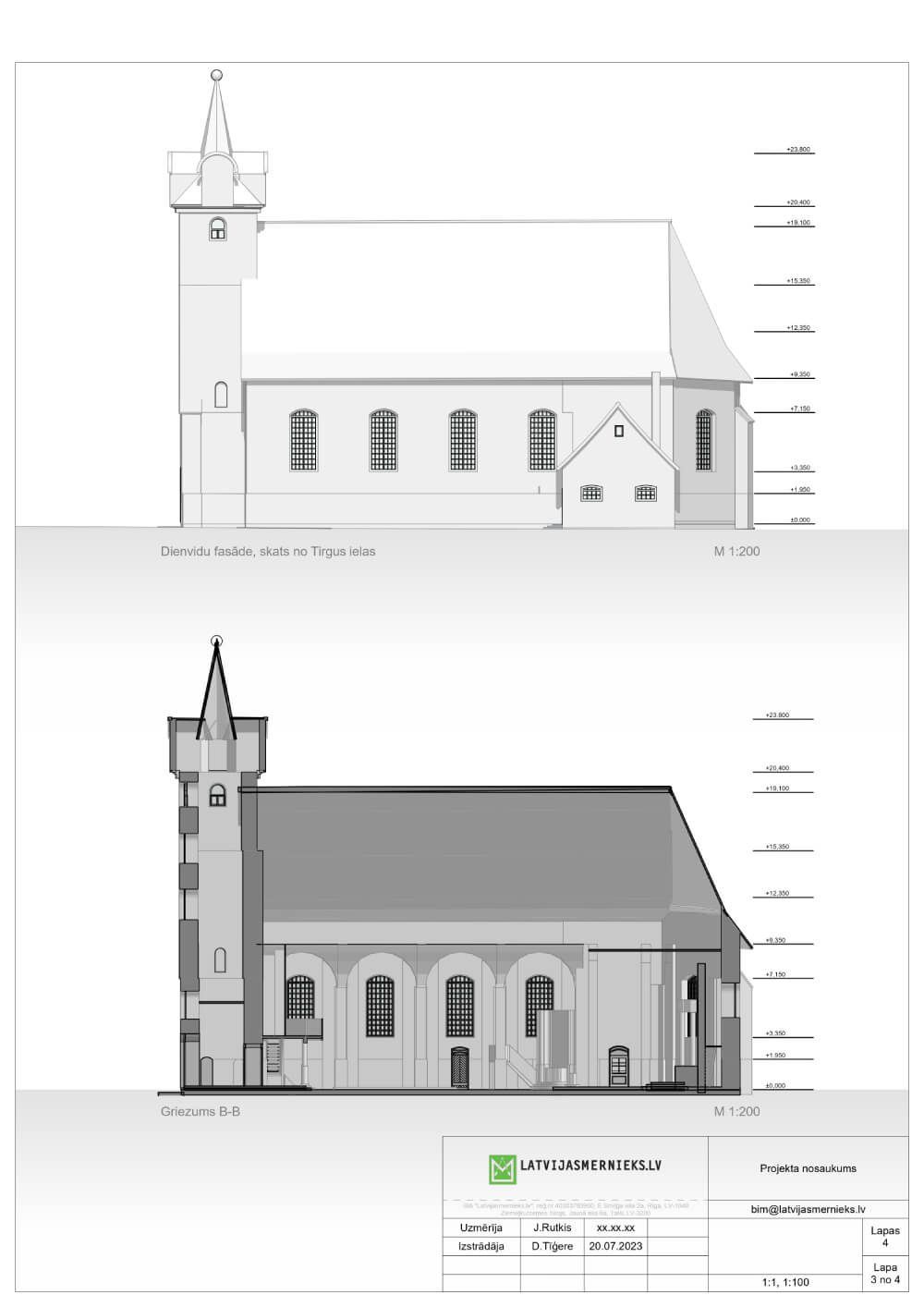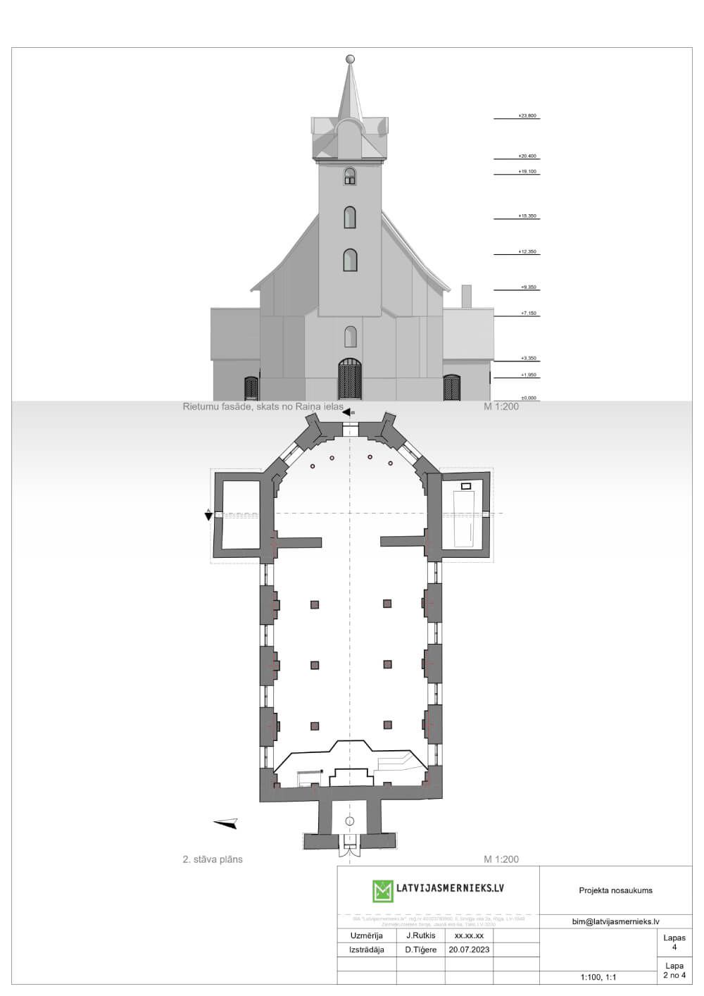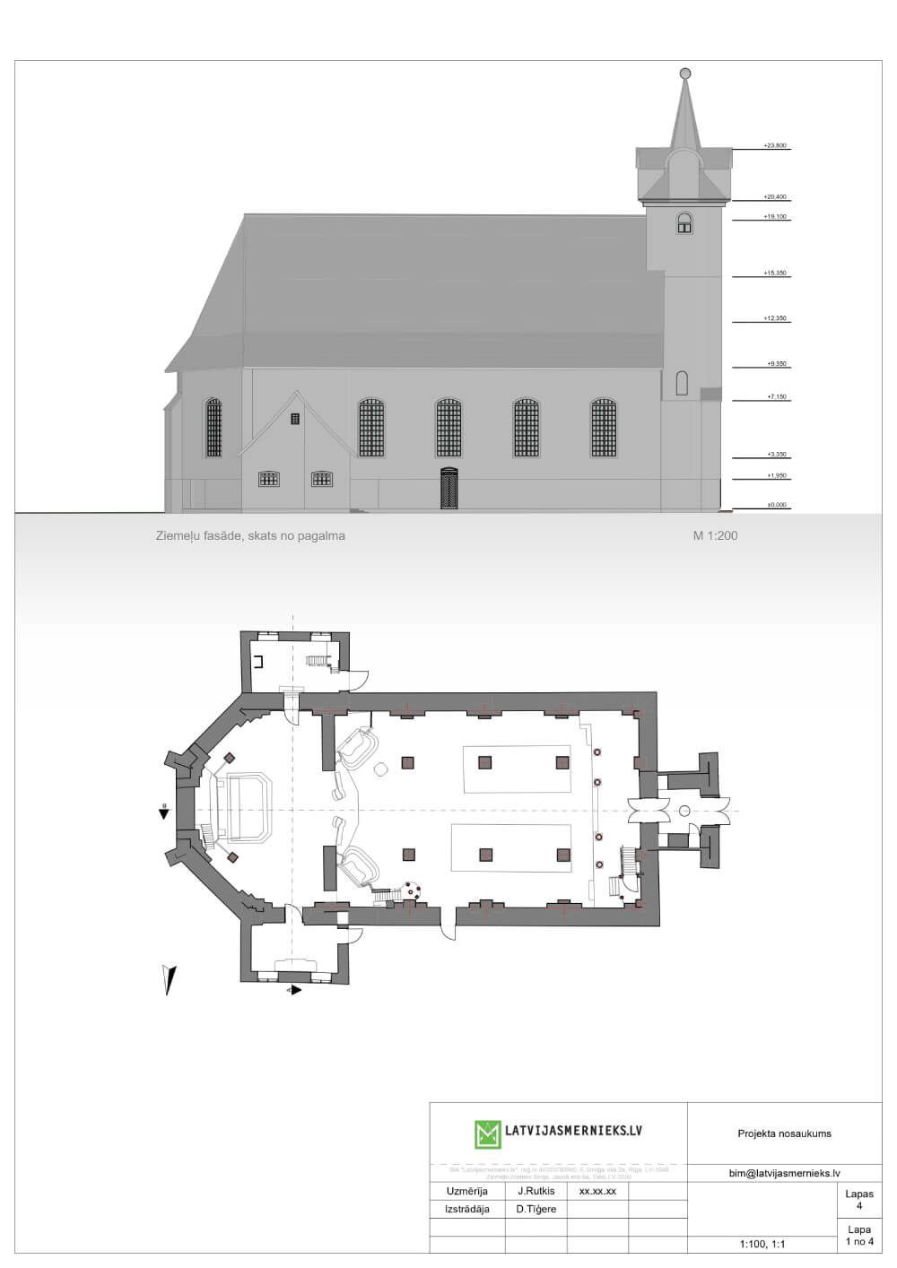 Latvijasmernieks.lv carried out laser scans of the building's exterior and interior in 2023, which were used to create a simple model of the building and detailed drawings of the floor plan, sections and elevations.